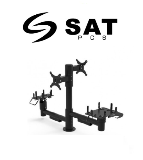 Soporte de Poste Metálico SAT S510 es una solución de hardware diseñada por SAT PCS para optimizar el espacio y la ergonomía en puntos de venta (POS). Existen dos configuraciones principales según la altura del poste central para adaptarse a diferentes tipos de mostradores.